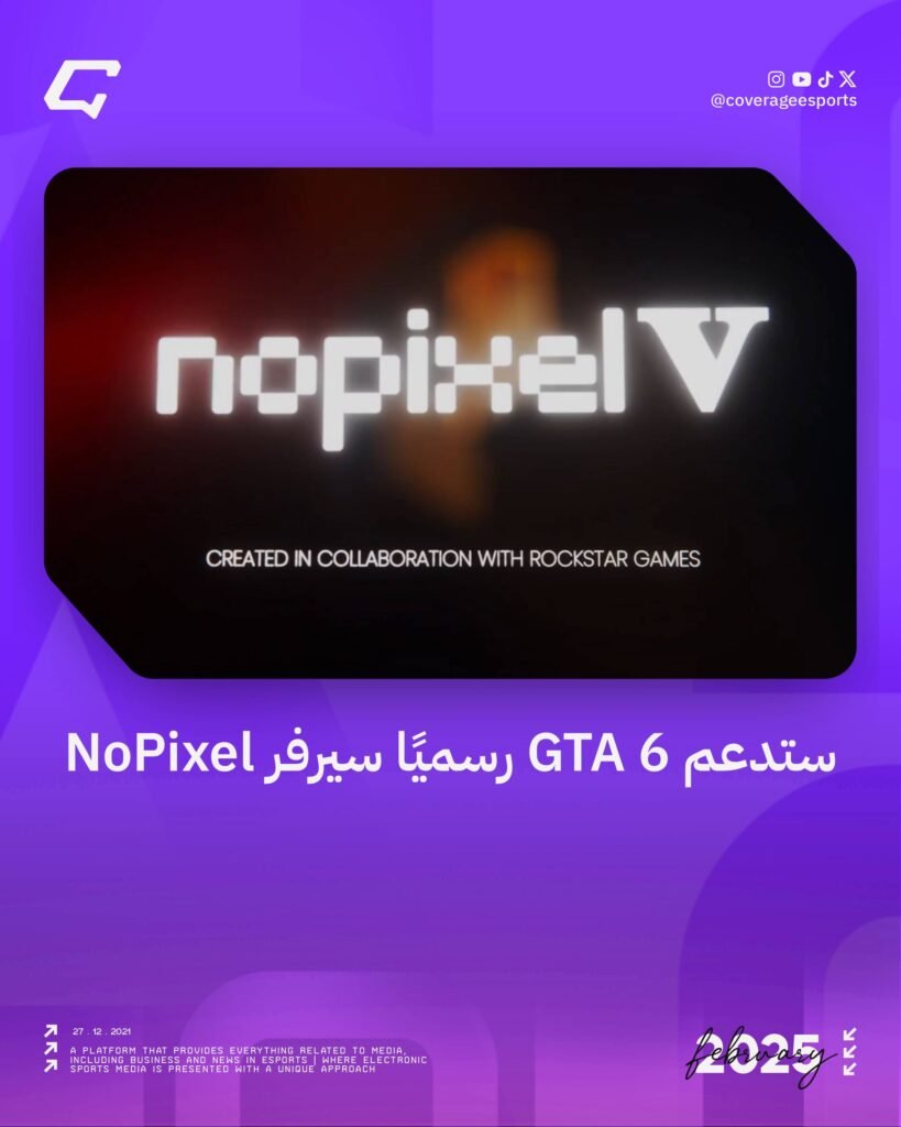 أعلنت Rockstar Games رسميًا أنها ستواصل دعمها الكامل لفريق NoPixel، السيرفر الأشهر في عالم GTA RP وذلك مع اقتراب إطلاق لعبة GTA 6.